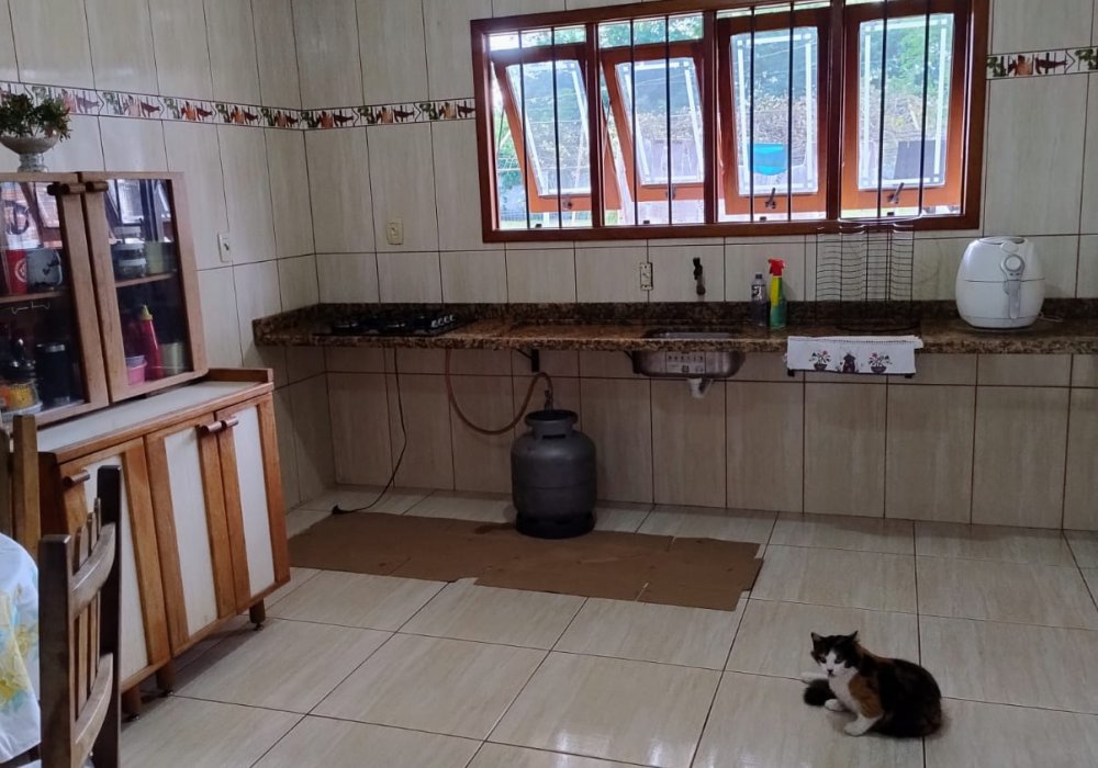 A casa esta composta por: 3 dormitórios, sendo 1 suite ,sala com lareira,cozinha,garagem e lavanderia. Com poço artesiano.