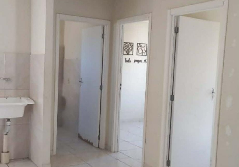 Composto por; 02 quartos; Sala e cozinha integrada; 01 Banheiro social; Estacionamento; Salão de Festa; portaria 24h, sistema de monitoramento, playground e quadra de esportes.